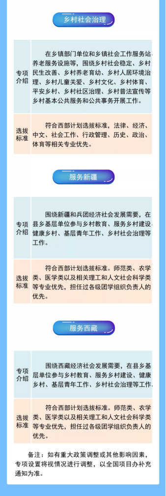 4.保留入学资格:已被录取为研究生的应届高校毕业生参加西部计划,学校会为其保留入学资格。