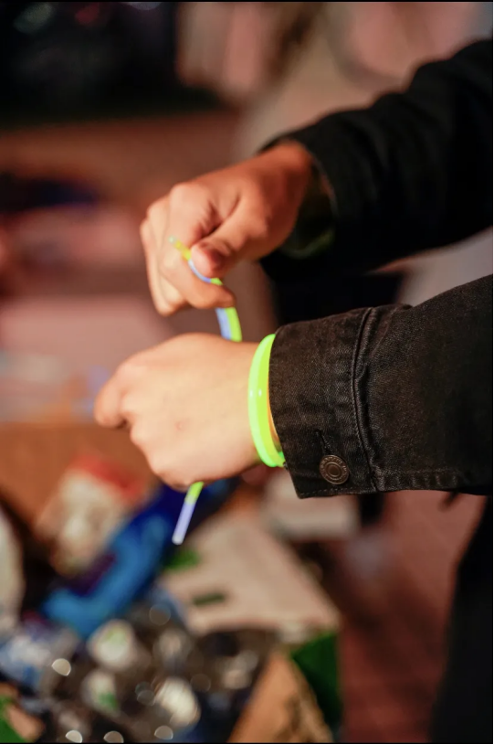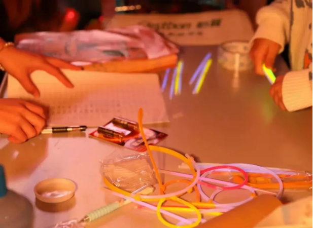 闪亮的荧光棒点亮了被黑夜笼罩的光芒,我们丢掉白天的束缚,用荧光武装全身用缤纷色彩绘制川传的专属图案。