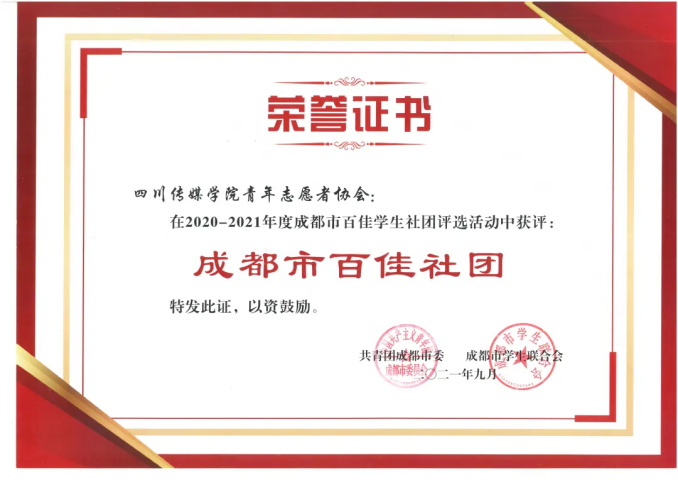 为进一步树立科学的社团发展导向,展示全市学生社团活动风采,共青团成都市委面向全市高校开展2020-2021年度成都市百佳学生社团创建及优秀学生社团展示活动。