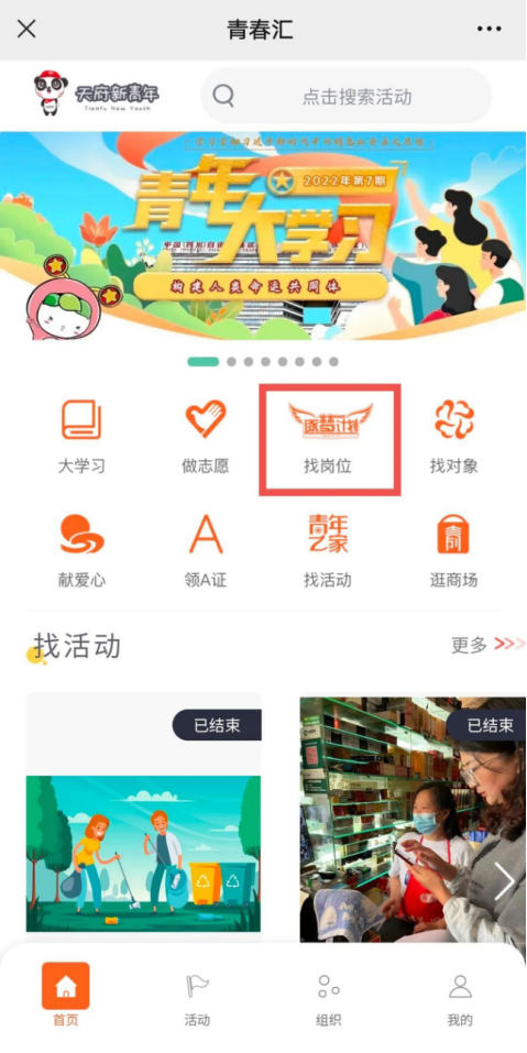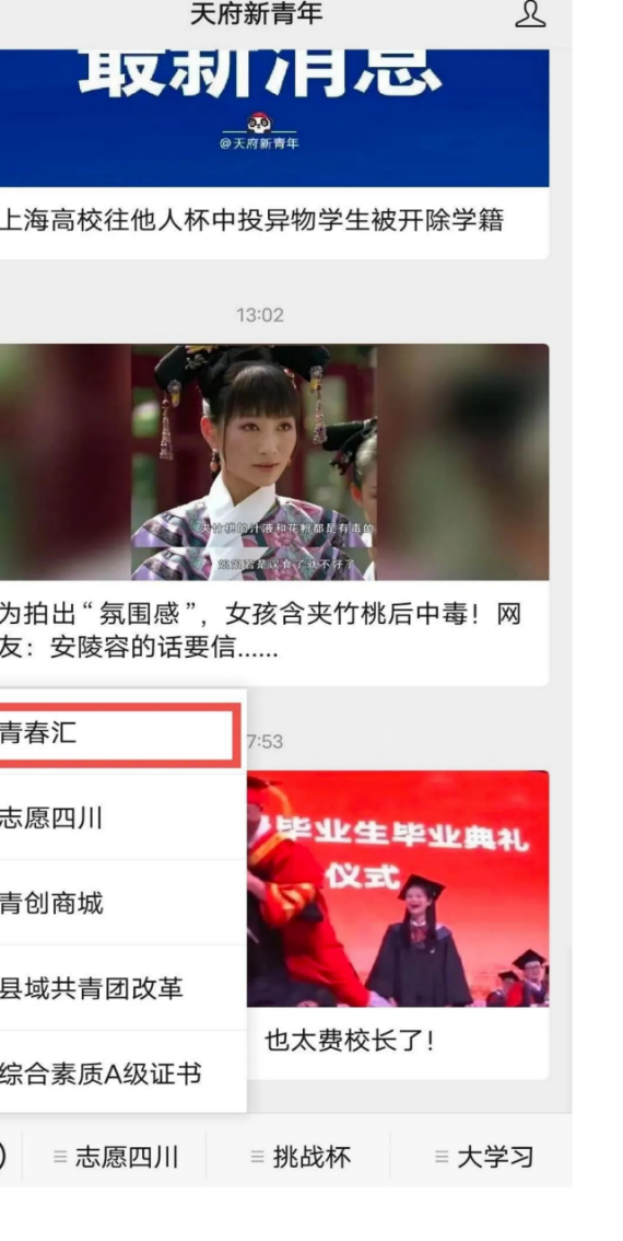 进入“天府新青年”微信公众号点击“青春汇”平台