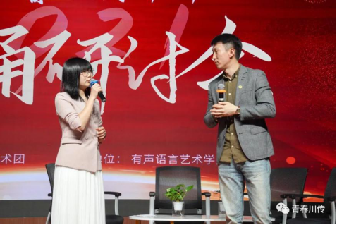 聆听青年声音,聚焦民族精神。由大学生朗诵艺术团举办,有声语言艺术学院分团委指导的“诵青春•赏年华”朗诵研讨会,于4月19日晚在四川传媒学院艺术交流中心举行。