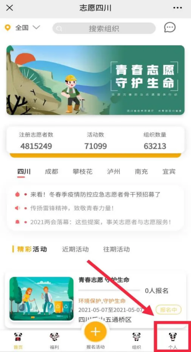 Step1:进入志愿四川平台首页后,点击个人按钮。