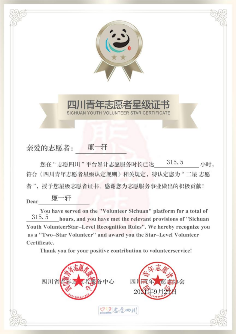 了解了星级志愿者评定规则,熊猫侠们快去志愿四川看看自己能认证几星级志愿者吧。