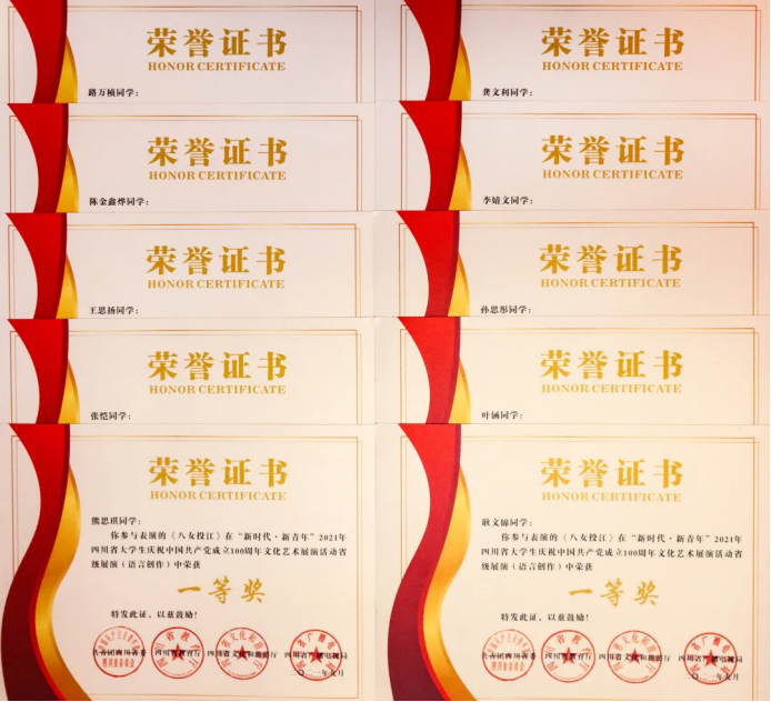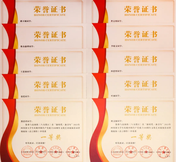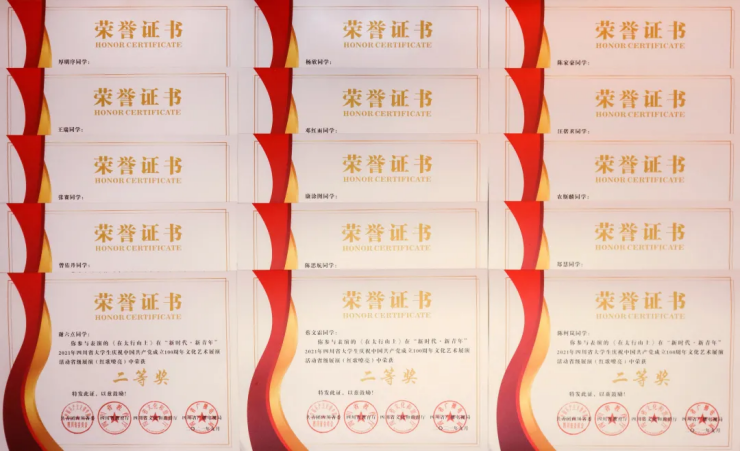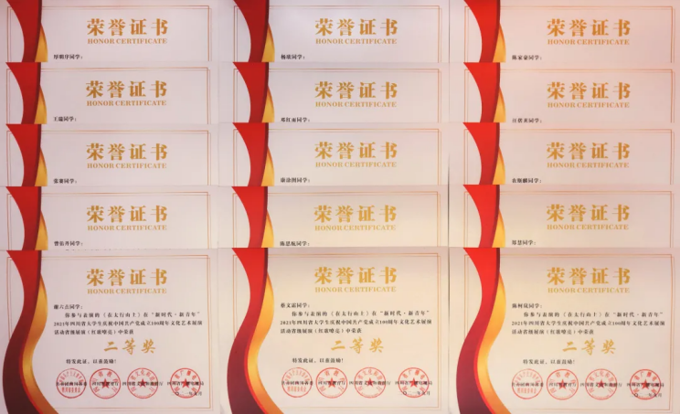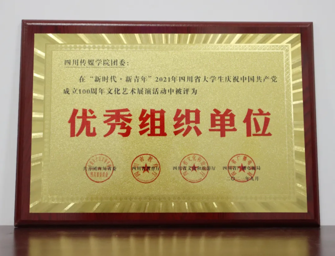 四川传媒学院团委在“新时代•新青年”2021年四川省大学生庆祝中国共产党成立100周年文化艺术展演活动中被评为“优秀组织单位”。