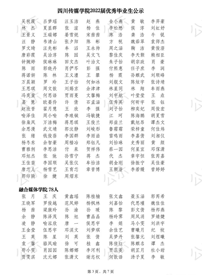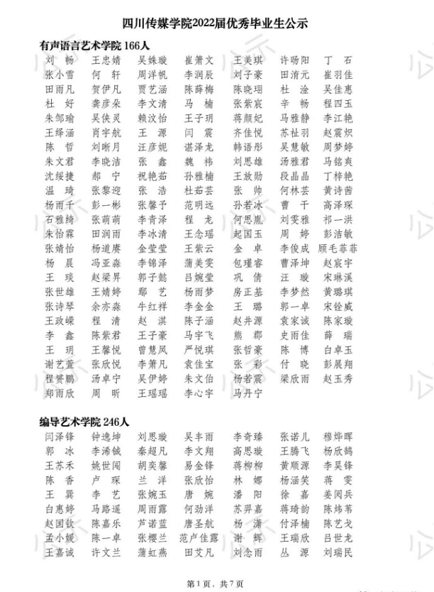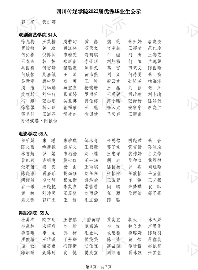 公示丨四川传媒学院2022届优秀毕业生