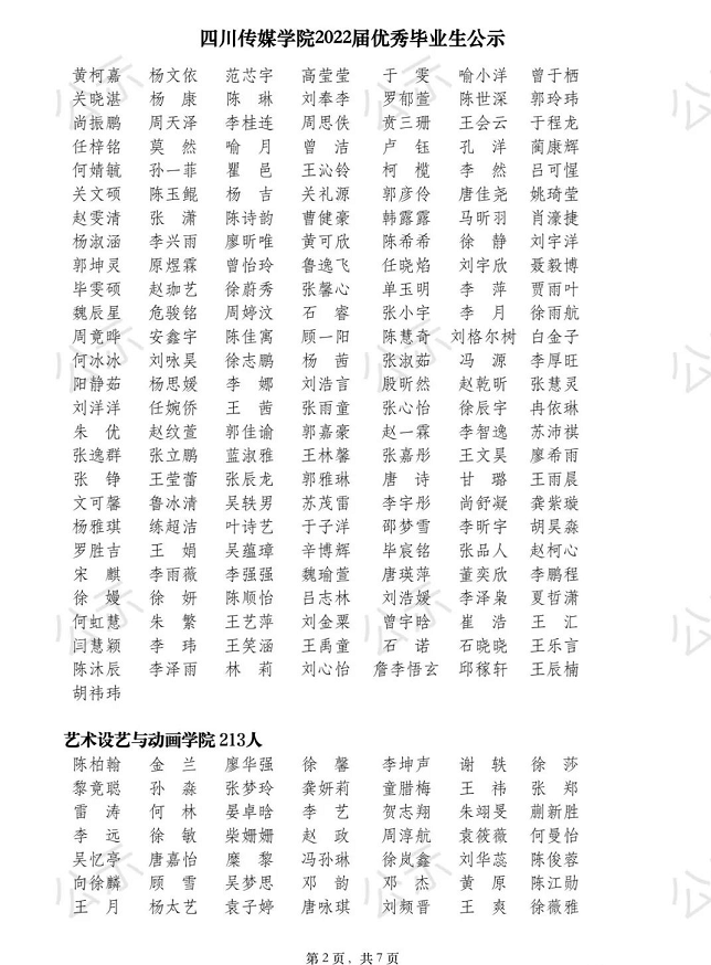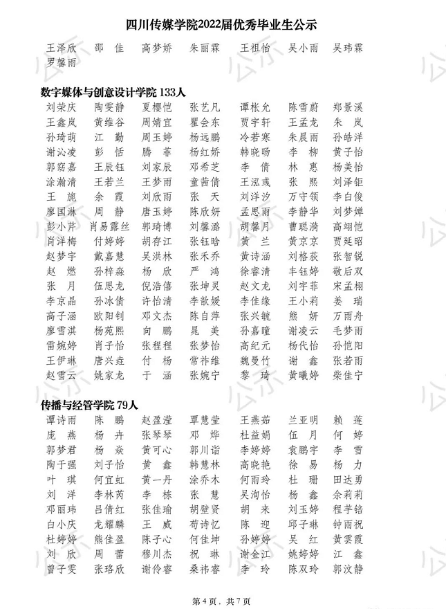 四川传媒学院2022届优秀毕业生公示
