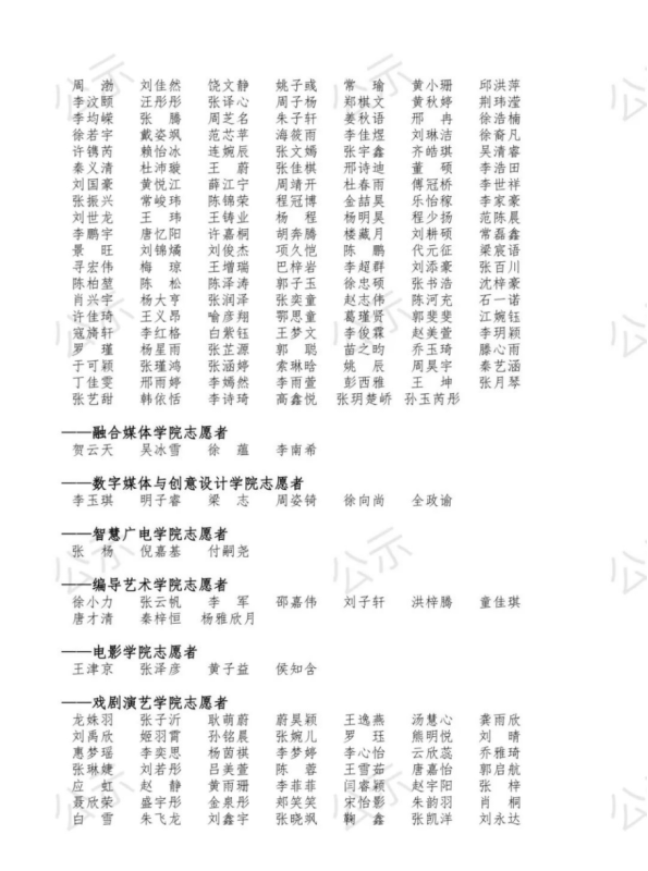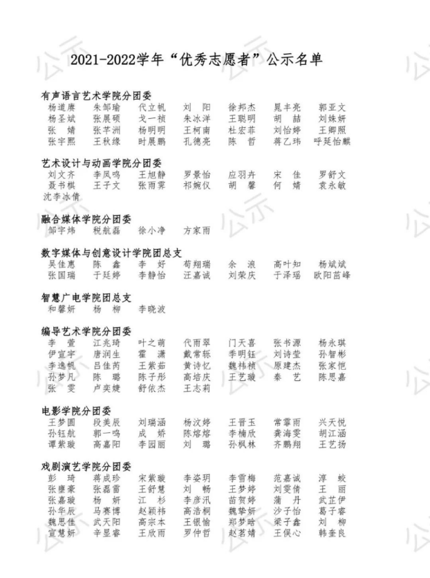 共青团四川传媒学院委员会关于2021-2022学年“优秀志愿者”评选结果的公示