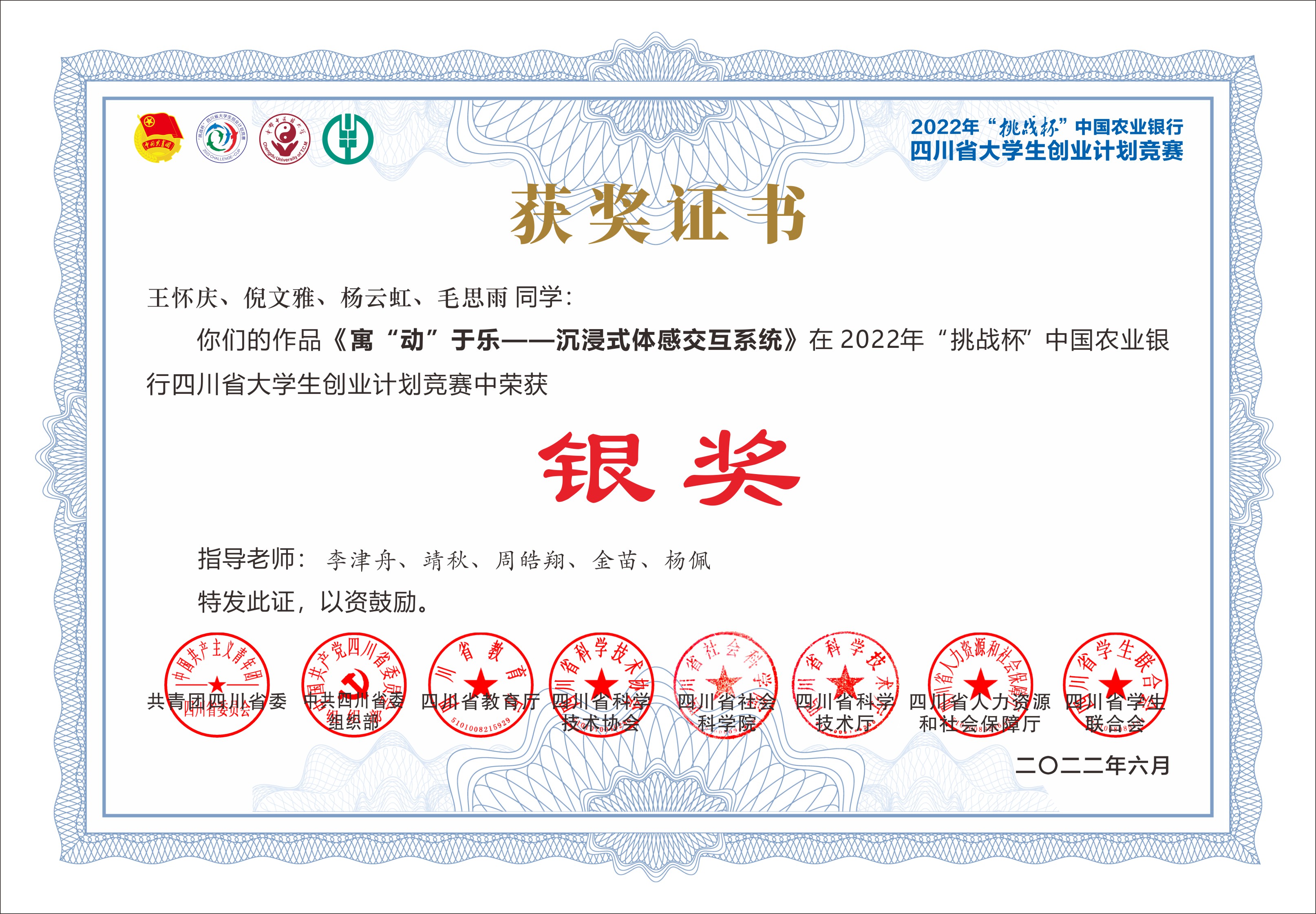 2022年“挑战杯”中国农业银行四川省大学生创业计划竞赛自5月启动以来,全省117所高校10万余名大学生积极参与,网报参赛作品24900余件。经激烈比拼,全省共评出金奖105件、银奖203件、铜奖300件。在本届竞赛中,四川传媒学院共获得银奖2项、铜奖3项