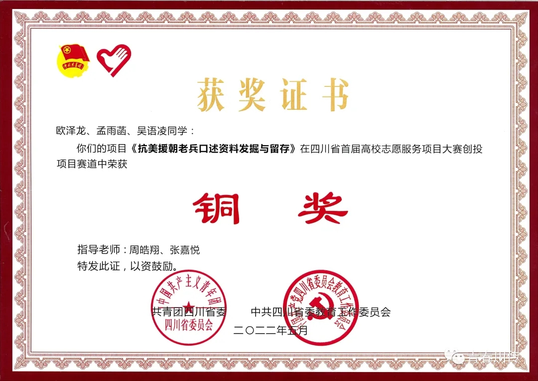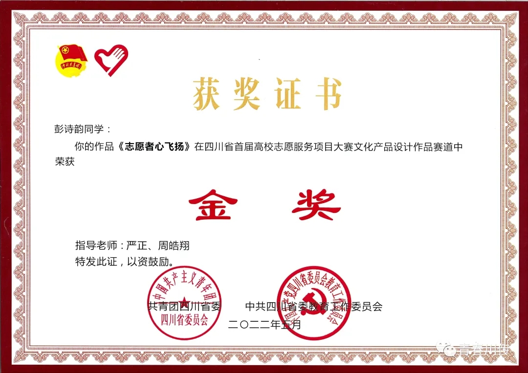 四川省首届高校志愿服务项目大赛:四川省首届高校志愿服务项目大赛由共青团四川省委、中共四川省委教育工作委员会主办,四川省学生联合会、四川省青年志愿者服务中心、四川青年志愿者协会、四川高校志愿服务联盟协办,成都大学承办。
