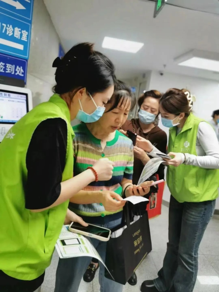 图为志愿者帮助听力受损患者使用线上挂号