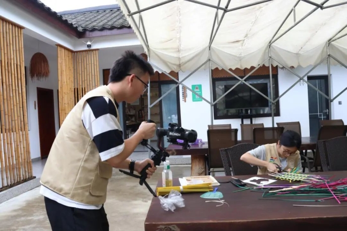 这次三下乡对于我来说十分特别,虽说是带着拍摄以及调研等实践任务,而在抵达竹艺村的那一刻,这片古老的土地在岁月的沉淀下,千年诗篇,默然胜辨,竹深树密虫鸣处,每一帧记录能越过屏幕退却盛夏的浮躁,体验竹编,在反复一挑一压中,编织出造型精美的竹编工艺品,经纬纵横间,指尖上的艺术在此刻具象化,更让我感叹于非遗的魅力。
