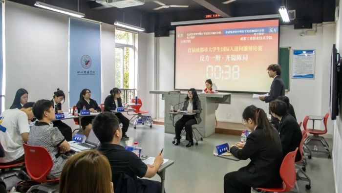 2024年9月22日,由四川省红十字会指导、成都市红十字会主办的首届成都市大学生国际人道问题辩论赛暨首届四川省大学生国际人道问题辩论赛成都市初赛在四川传媒学院东区A9教学楼举办,四川传媒学院红十字会、校团委、国际传播研究院作为活动支持单位全程保障活动顺利进行。四川传媒学院副校长、国际传播研究院院长、红十字会会长、中华名辩盟副主席李巍教授受邀担任比赛评委,大学生辩论社派出骨干成员组建辩论队代表学校参赛,该社及有声语言艺术学院团委组建的志愿者团队在活动各类工作人员岗位上发挥了重要作用。
