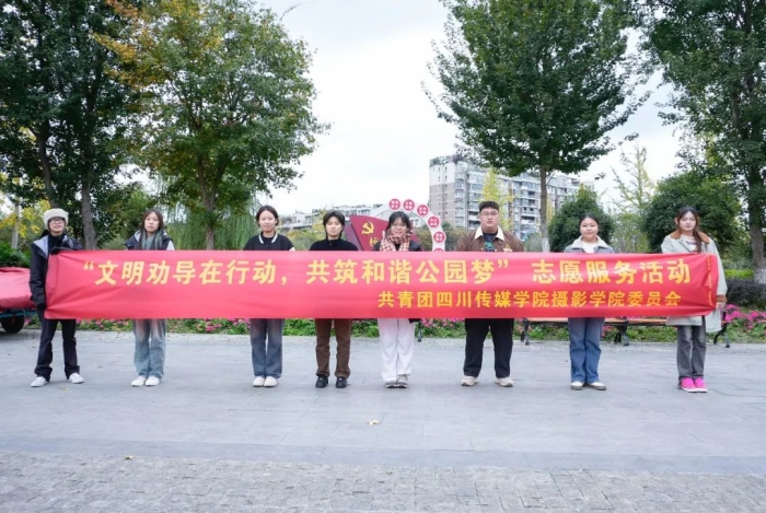 为弘扬社会文明新风,改善公园环境,四川传媒学院摄影学院团委前往犀和社区沱江河公园开展了“文明劝导在行动 共筑和谐公园梦”文明劝导志愿服务。