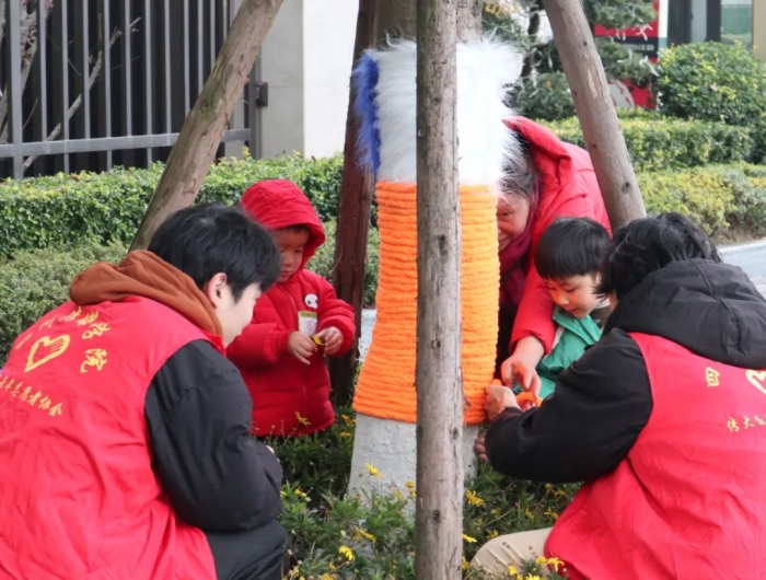 通过志愿者和小朋友们的努力和创意,为大树披上了五彩斑斓的“毛衣”,成为了冬日里一道别样的风景。在装饰完毕之后,所有树木的“毛衣”被一一展示,大家一起合影留念,为“我的大树”代言,将这一充满欢乐与合作的瞬间定格,成为了小朋友们脑海里一段珍贵的记忆。整个活动现场洋溢着欢声笑语,大家的脸上都洋溢着成就感和幸福感。