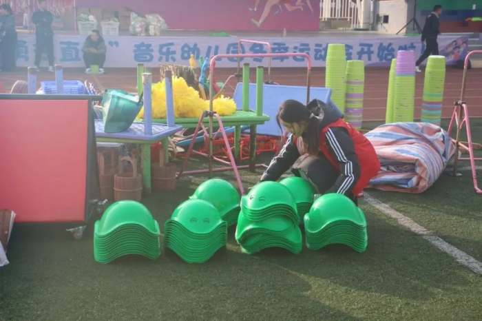 在运动会开始前,志愿者们来到了活动场地协助幼儿园的老师们布置运动会场地。经过的大家齐心协力,原本空旷的操场被装饰得五彩斑斓,充满了欢乐的氛围。活动伊始,各个班级有序的入场进行开幕式,接着大中小班的小朋友们带来了精彩的表演。在此期间志愿者们协助老师们搬动表演的道具,帮助小朋友们顺利完成开幕式演出。